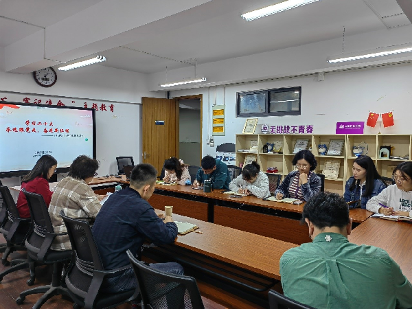 最后,凌慧义强调,二十大报告要求学习贯彻党的二十大精神是当前全党和全国的首要政治任务,要引导干部和群众原原本本研读党的二十大报告和党章,认真领悟党的二十大提出的新思想新论断,做出的新部署新要求。学院党总支通过设立了“学而时习”的诵读栏目,师生一起读二十大报告学报告悟思想,加强理论学习和提升师生理论素养。她希望教职工要深入学习领会二十大报告精神,牢记“为党育人、为国育才”的初心使命,高质量的完成“人才培育、立德树人”的根本任务,让理论学习走心、走深、走实,更好的把学习具体成效转化为工作成效。