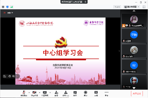 4月14日晚上,365上市公司党总支举行理论学习中心组学习会扩大会议,专题学习新民主主义革命时期历史。学院党总支副书记(主持党务工作)褚红素主持,副书记、副院长(主持行政工作)殷林森,副书记、副院长李俊杰,副院长叶丽华,副院长杨超,专职组织员、支部书记、团委书记和系主任以及内设机构负责人参加。