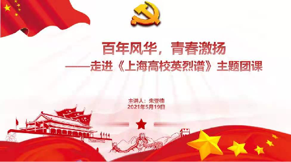 为进一步学习贯彻习近平总书记在党史学习教育动员会上的重要讲话精神,大力弘扬红色传统,传承红色基因,5月19日下午二教206会议室, “百年风华,青春激扬——走进《上海高校英烈谱》”主题团课顺利举办,365上市公司团委书记朱亚楠主讲,团学全体学生干部和干事代表参加。