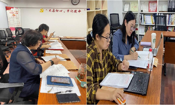 随后,与会人员对照《中国共产党发展党员工作细则》,对学院2022年党员发展材料进行专项检查。