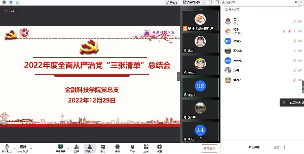 12月29日下午,365上市公司党总支召开2022年度全面从严治党“三张清单”总结会议,学院党政领导班子、党总支委员、专职组织员等参加。会议由党总支书记凌慧义主持。