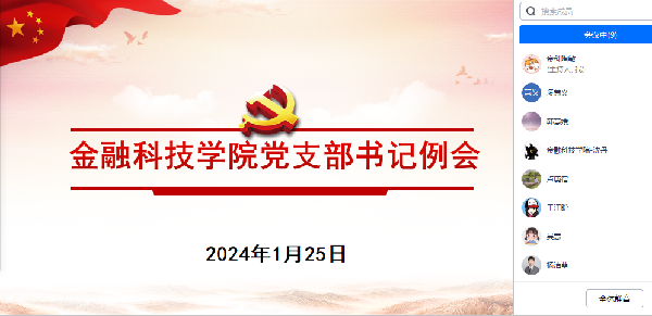 金融科技系师生党支部书记吴慧和金融工程系师生党支部书记王江盼分别交流了寒假期间及下学期初党支部组织生活、“为民办实事”等工作计划和安排。