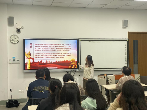 党支部学生党员张照博为大家领学,她主要从总体国家安全观的核心要义、贯彻落实总体国家安全观要做到“五个统筹”、核心要义集中体现为“十个坚持”、总体国家安全观关键在“总体”等四个方面对总体国家安全观展开介绍,并结合专业特色举例分析了政治安全和金融安全。总体国家安全观突出的是“大安全”理念,涵盖诸多领域,一定要把政治安全放在首位。