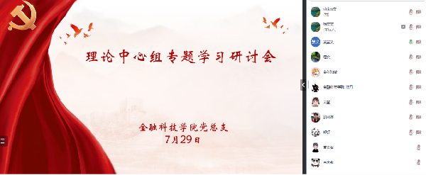 党总支副书记、院长殷林森分享了学习党的第二十届三中全会公报的体会,重点解读了金融领域的改革举措。一统筹推进财税金融等重点领域改革,二深化金融体制的改革,三落实好防范化解房地产、地方政府债务、中小金融机构等重点领域风险的各项举措。作为长期从事金融人才培养和金融问题研究的高校教师,应当勇担时代赋予的使命责任,着眼国家战略发展需要,密切关注数字金融赋能科创产业发展、数字金融与金融开放风险、金融科技提升国际金融中心能级等问题,开展持续、深入的研究,把研究成果写在祖国的大地上,用于服务地方经济发展、培养适应社会发展需要的高素质人才。