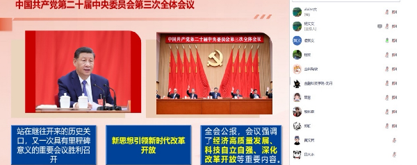 党总支书记凌慧义围绕习近平总书记在党的第二十届三中全会的重要讲话和全会《决定》,通过详细解读了中共中央新闻发布会介绍的20个全会重要的知识点,对全会精神进行了系统的阐述和深刻讲解。她指出,党的第二十届三中全会的召开具有划时代的意义,全会审议通过的《中共中央关于进一步全面深化改革、推进中国式现代化的决定》,是指导新征程上进一步全面深化改革的纲领性文件,为推进各项事业发展指明了方向,提供了遵循。希望大家提高政治站位,增强思想自觉,结合自身工作,把深入学习领会全会精神与学习领会习近平总书记关于全面深化改革的一系列新思想、新观点、新论断结合起来,以实际行动推进各项工作任务落实,取得实效。