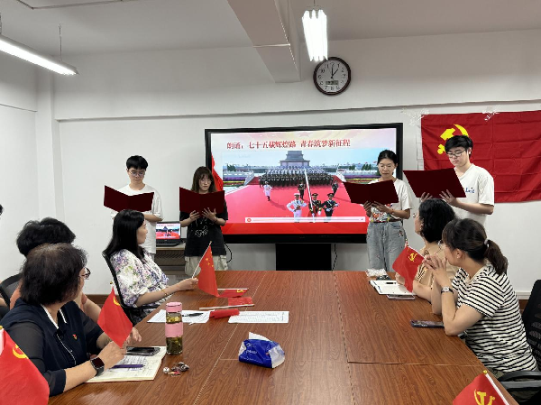 最后,在凌慧义的领誓下,新党员宣读入党誓词,老党员重温入党誓词。