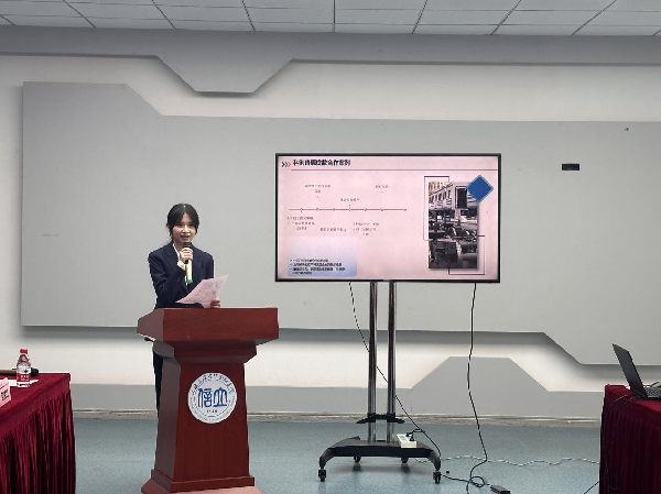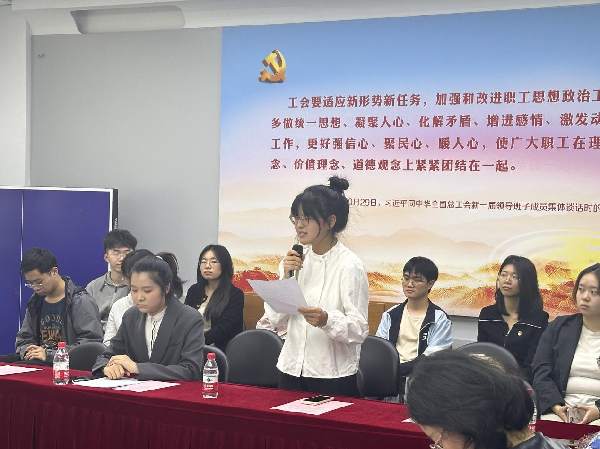 金融科技系学生党支部入党积极分子王萨迪结合自身参加赛艇获奖的经历,分享青年人应如何践行“体育强国”精神。“声入人心”宣讲团成员姬小丫、谷灵婳在会上交流了本次主题党日活动学习心得。