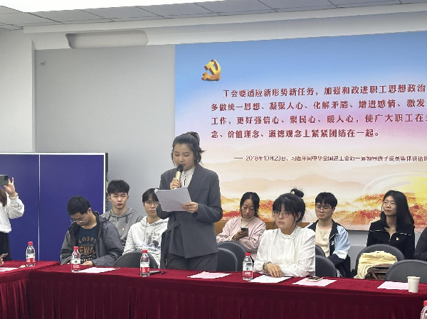 由入党积极分子冯文轩、仇静蕾、李天宇、王妍兮四位同学带来的《青春,为中国式现代化挺膺担当》主题朗诵为本次活动拉开序幕,彰显了青年风采,勇担时代重任的新时代青年使命感。