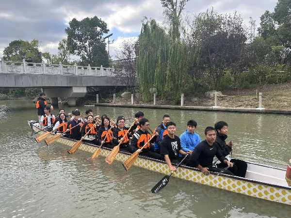 本次活动还安排的体育精神实践环节。依托蕴含着中国传统文化的我校优秀体育运动项目——龙舟,两支部党员开展“艇”立潮头的龙舟友谊赛。