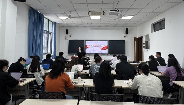 随后,黄陆斐老师分享了其在人民银行上海总部挂职一年的工作经验。挂职期间,他通过参加单位党支部活动,提升政治素养;参与银行间风险监测、设计预警模型、撰写金融调研报告等业务工作,深度实践提高业务能力;引入金融科技专业案例教学中,为学校教学科研工作创新发展贡献自己的力量。