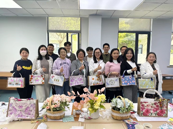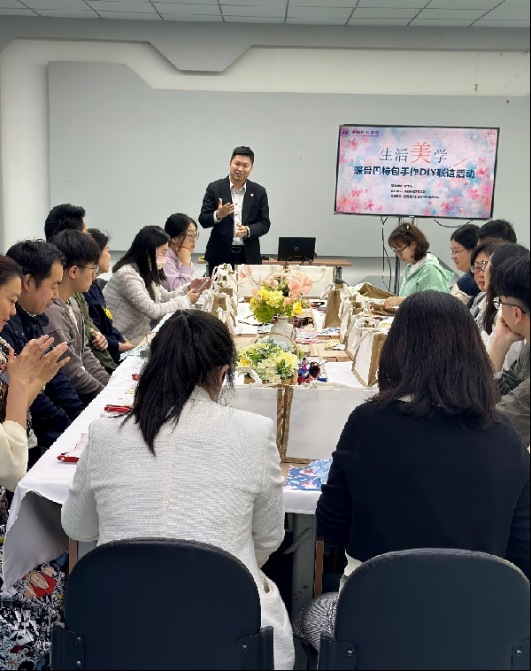 4月18日下午,在校工会指导下,365上市公司工会联合校友单位招商银行上海分行外高桥支行共同举办“生活美学——蝶骨巴特包”手作DIY联谊活动,蝶骨巴特是一种新型的艺术手法,将美丽图型剪裁,拼贴装饰于心爱的物品上,展现出创意设计的装饰艺术,进行一场创造生活美学之旅。