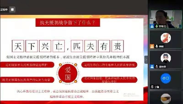 陈敏云结合当前纪念中国人民志愿军抗美援朝出国作战70周年活动,从“四史”学习教育的核心要义出发,阐释了通过学习教育可以增强对祖国的热爱认同,提升党性修养,提高干部工作能力。她指出,在后疫情时代,要知史爱党、知史爱国,将初心落于实践,把使命勇担在肩。为实现“十四五”规划和二零三五年远景目标,必须坚持党的全面领导,充分调动一切积极因素,广泛团结一切可以团结的力量,形成可以推动发展的强大合力。
