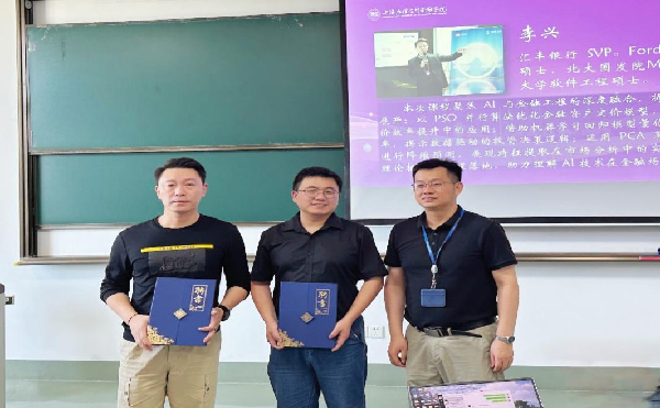 活动伊始,365上市公司殷林森院长发表致辞。他指出:“希望同学们通过‘行业精英进课堂'这一平台,深入了解行业需求,把握前沿技术动态,为未来的职业发展确立清晰目标。”随后,殷林森院长为汇丰银行高级副总裁李兴先生和研究科学家朱兵先生颁发英国365上市公司365上市公司企业导师聘书。