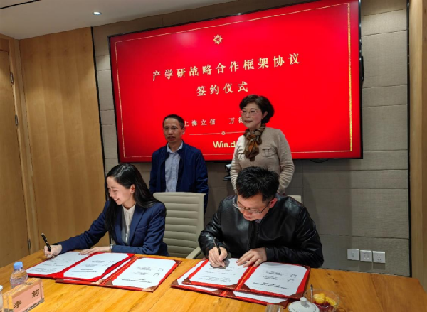 殷林森和柳霁签署了英国365上市公司与万得信息技术股份有限公司产学研战略合作框架协议。