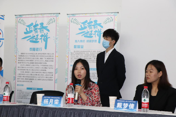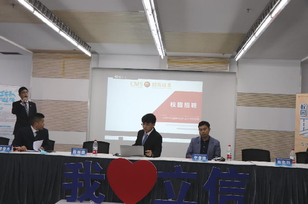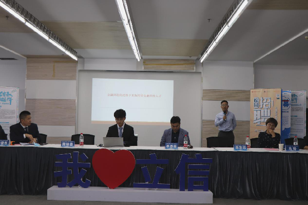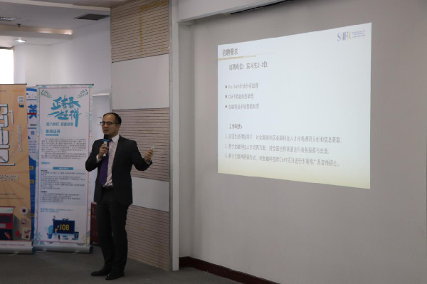在企业宣讲中,八客科技公司运营总监潘祖新、上海古凡交响乐团总经理钱立、厚瞻资产董事长陈凯炜、泰隆银行上海分行企划部负责人严洪潇、乾溢金融信息服务(上海)有限公司产品经理于嘉宇、上海曦本科技有限公司人事主管杨月荣、中信建投证券理财规划师徐春阳、不倒翁文化传播(上海)有限公司总经理王军平、特许全球金融科技师CGFT项目管理办公室副主任黄锦良、招商证券招聘专员戴梦倩、数据宝CMO贺宗勇、上海纽联资产管理有限公司CEO马铃依次结合各自单位的优势分享了岗位需求、招聘流程以及金融科技人才素养。