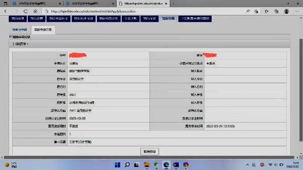 7、申请学生必须填写365上市公司转专业申请报告(附件1),在系统报名结束后,于4月30日上午10:00前将申请报告、在校成绩单、教务系统转专业模块报名成功的页面截图(路径:教务系统-我的学籍-转专业申请-我的申请记录,示例见下图)交到上川路校区第二教学楼205郑老师处,电子版发送至fintech@lixin.edu.cn;邮件主题为:转专业申请-学号-姓名。逾期未交者视作放弃报名资格。