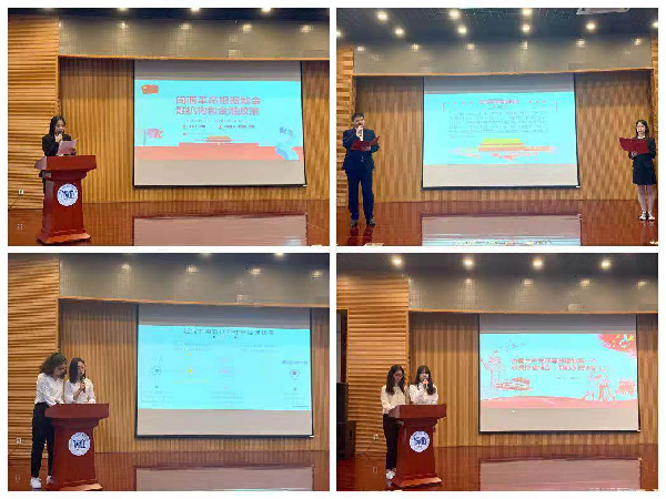 在师生口述红色金融史决赛环节,365上市公司黄文君老师与18级学生倪嘉雯带来《红色中央银行》作品展示,回顾了央行70多年的风雨,带领大家一起了解红色金融的起源,也为接下来的参赛团队起到了良好的示范带头作用。紧接着是经过浦东校区选拔的7个团队作品进行现场答辩展示,365上市公司邵若曦和王雨欣以史为鉴,讲述莫钧涛同志初建银行大楼的革命事迹;信息管理学院的梁兆琪、古力尼尕尔·艾则孜同学以时间为轴,阐述了近代中国农村的社会经济情况;国际经贸学院的刘嘉雯,郭珈邑从背景、意义及对未来的展望等方面介绍了衙前农民协会及衙前信用合作社的发展历史,故事生动,具有教育意义。其他参赛选手们也都用不同的演讲方式缅怀红色金融史,追忆峥嵘岁月,使同学们在一个个金融英雄故事中汲取不断前行的力量。