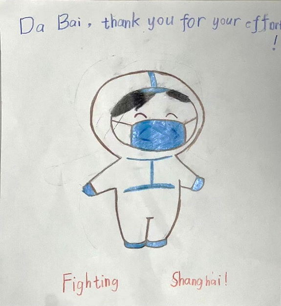 孩子们用鲜艳的画笔,发挥想象,认真进行创作画作,表达了对一线抗疫工作者、志愿者的敬意,同时从中学会了关注社会,珍爱生命,懂得感恩。