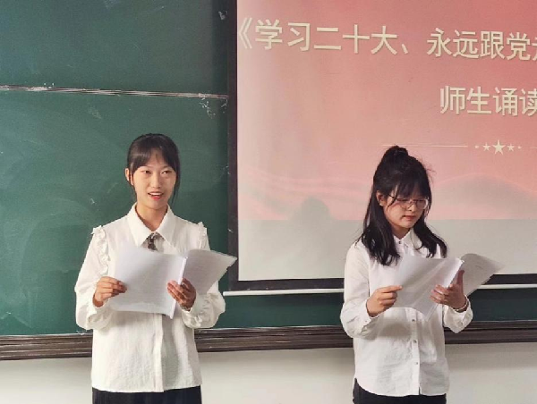 活动中,姬小丫、王妍兮等师生进行了《学习二十大、永远跟党走、奋进新征程》诵读。