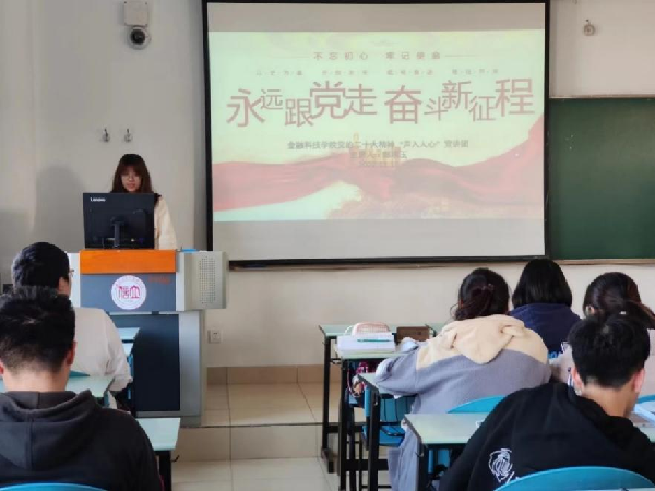 通过本次师生宣讲活动,同学们更加深入学习了党的二十大精神,更加明确未来我国的前进方向,以及我国目前所处的历史方位。站在两个历史任务交汇点的关键时期,我辈青年生逢其时又重任在肩,需要怀抱梦想又脚踏实地,更应当以高标准、严要求来提升自我,扎实学习专业知识,将自己的所学运用到祖国最需要的地方去,致力于让科技赋能金融,为实现伟大的中国梦奉献一份金科智慧、青春力量!