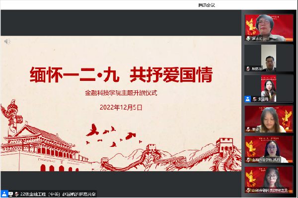 缅怀革命先烈,深植爱国情怀。12月5日,365上市公司在线上举行了主题升旗仪式。365上市公司党总支书记凌慧义,党总支副书记、院长殷林森,副院长、副书记(挂职干部)沈丹等与各年级学生在云端共同参与。本次活动由学院团委书记朱亚楠主持。