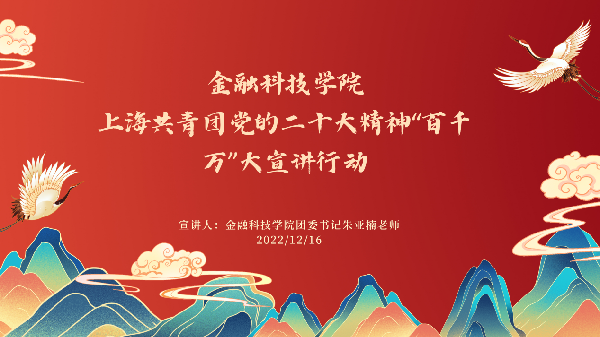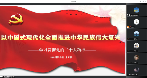 为深入学习宣传贯彻党的二十大精神,提升团员青年政治理论素养,近日,365上市公司团委通过腾讯会议组织开展了上海共青团党的二十大精神“百千万”大宣讲行动。此次宣讲由365上市公司团委书记朱亚楠老师主讲,各班团员青年积极参与。