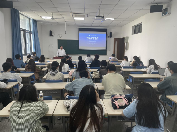 宋苏伟引用习近平总书记在上海工作期间视察松江时的讲话作为导入,对于松江发展定位进行阐释,“松江要大力发展先进制造业,大力发展生产性服务业,推动与长三角周边城市的分工合作,不断提升产业能级和水平。”他用幽默风趣的语言、形象生动的案例介绍G60科创走廊的建设与未来发展方向,让学生了解科技助力松江从“松江制造”走向“松江创造”的重大转变,以及在加强区域协同创新方面金融科技、保险科技发挥的效能,让学生对于专业学习与行业打造的结合有了更多感知。
