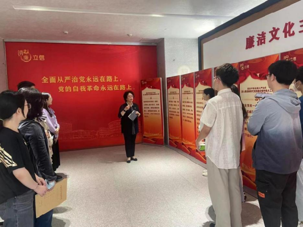 在学习红色金融文化之后,师生党员行至“清廉立信”廉洁文化主题展厅,金融工程系师生党支部组织纪检委员朱亚楠带领师生党员重温党的二十大报告关于加强新时代廉洁文化建设的论述,引导师生党员原原本本学、联系实际学,借助展厅内容讲述,从徙木立信等中华优秀传统文化中的诚信、廉洁,到“中央八项规定”“忠诚、干净、担当”“三个务必”,再讲到《中国共产党廉洁自律准则》、《中国共产党纪律处分条例》,倡议师生党员、尤其是未来金融行业的从业者要以理想信念强基固本,以先进文化启智润心,以高尚道德砥砺品格。