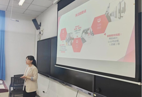 同时,韩老师向同学们分享个人学生阶段在“创青春-全国大学生创业大赛”“电子商务三创赛”“案例分析大赛”等多次参赛经历。结合实例向大家说明项目立意应该结合时代背景以及热点话题,鼓励跨专业合作,也展示了自己过去的项目实施基础知识以及策划书和答辩的思路逻辑。同学们收益颇丰。