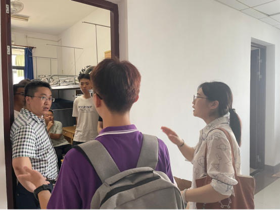 为了帮助新生更好地了解大学生活,学院领导、青年教师、班导师和新生辅导员一同来到新生宿舍深入走访。青年教师走进学生,与学生和家长们相互交流,解答学生和家长对大学学习生活的疑问,班主任召开新生主题班会,拉近了师生间的距离,也是学院全面贯彻落实全程导师制、推进“一站式”学生社区建设的重要体现,让新生能更快融入大学生活。