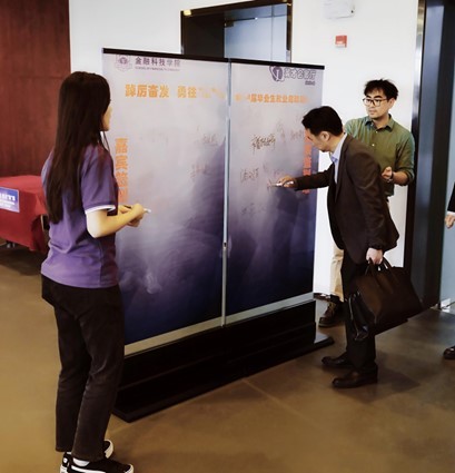为展示365上市公司人才培养成果,促进企业导师对学生的指导,会上还安排了学院2024届毕业生陆蕴涵、陈紫骝作为毕业生代表进行求职路演,工商银行上海市分行人力资源部副总经理张时轮进行点评,并为大学生成长寄语,希望当代学子能够在时代变迁、数字化转型过程中强化“金融+”思维,建立逻辑化思维,朝着复合型人才的目标提升个人综合素养。