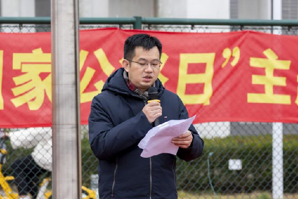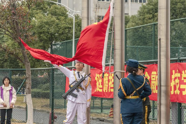 早晨7点30分,升旗仪式正式开始,国旗班同学迈着整齐有力的步伐来到升旗台,伴随着激昂的国歌,全体师生行注目礼。全体师生肃立,深切缅怀南京大屠杀死难同胞,缅怀为抗战胜利献出宝贵生命的革命先烈和民族英雄。