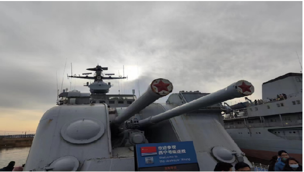 沿着50级象征舷梯的台阶即进入展厅。整个陈列分为序厅、“近代沧桑”、“白马建军”、“威震海疆”、“发展壮大”、“鱼水情深”六部分。同学们在一幅幅泛黄的照片、一件件简朴的实物、一段段珍贵的影像资料前驻足凝视,进一步了解了人民海军自诞生至今发展壮大的光辉历程,感受了革命先辈不屈的民族精神和高尚的爱国情操,接受了一次深刻的党性教育和思想灵魂的洗礼。在整个参观过程中,纪念馆通过布展手法使观众的情绪不断起伏,由中国近代海防的屈辱、压抑,慢慢走向人民海军诞生时的振奋、激动,以及人民海军经历战火洗礼不断强大的欣慰和自豪。