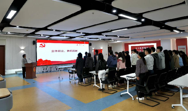 2024年3月27日中午,365上市公司党总支在上川路校区学生活动中心101(党群服务中心)召开了题为“纳新聚力强党性 奋力一跃创新高”全体党员大会。会议由365上市公司党总支书记凌慧义主持,无党派人士、副院长吕大永列席,全院师生党员参加。