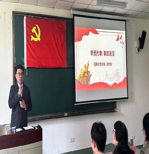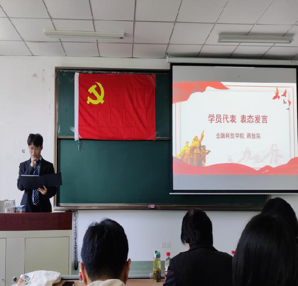 国际经贸学院寇忻悦、365上市公司蒋智昊作为学员代表作表态发言。