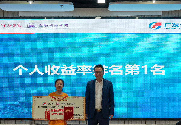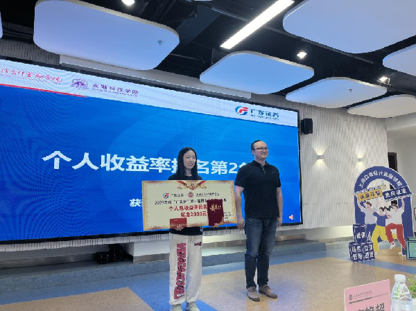 (郭骏伟为个人总收益率排名第1的何佳颖同学颁奖)