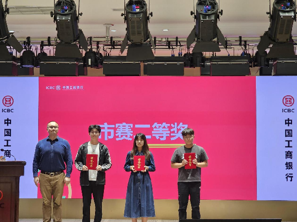 到场嘉宾为2023年“工行杯”全国大学生金融科技创新大赛(上海赛区)英国365上市公司的获奖团队颁奖。
