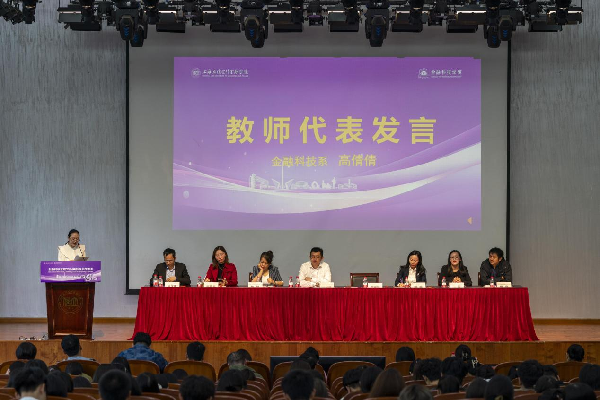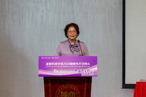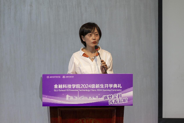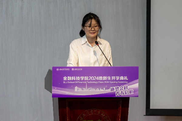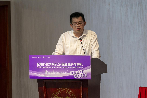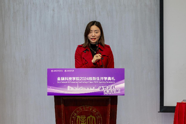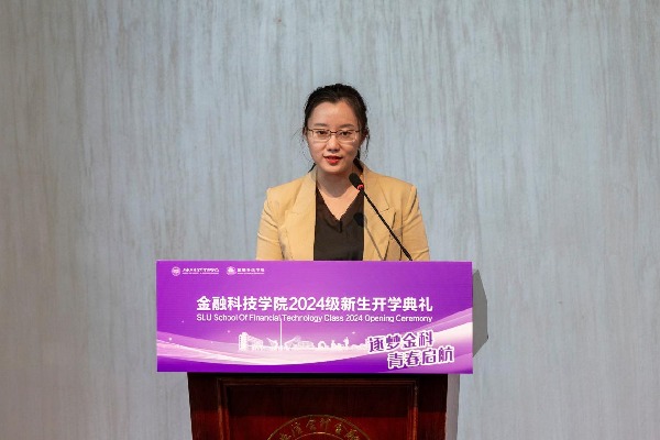 学院教师代表高倩倩强调了金融科技在现代社会的应用越发广泛,鼓励新生在大学阶段努力追求卓越。