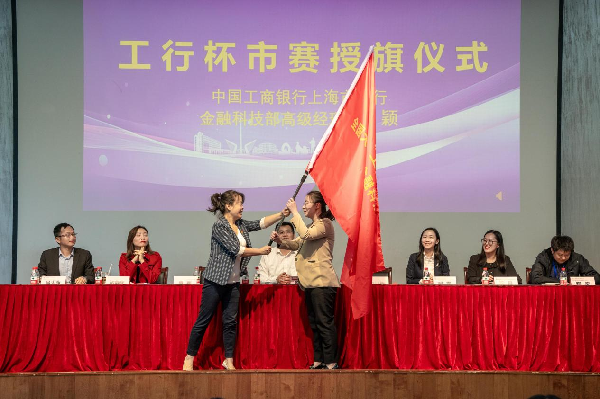 合作企业嘉宾、中国工商银行上海市分行金融科技部高级经理周颖为工行杯上海市赛授旗。