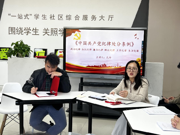 为深入学习贯彻党的二十届三中全会精神,进一步推进党章学习常学常新,持续推动党纪学习走深走实,引导党员强化规矩意识,推动党建引领一站式学生社区建设,金融科技系学生党支部于11月29日下午在上川路校区学生之家组织了集中学习。本次学习内容丰富,包含党章学习主题党课、党纪学习交流等多个环节,会议由金融科技系学生党支部书记朱亚楠主持。