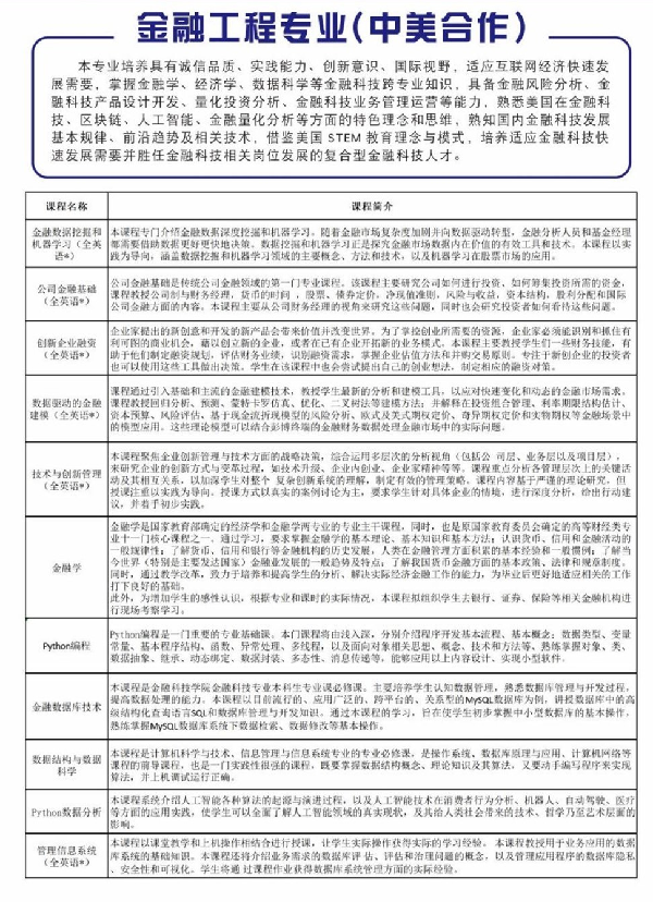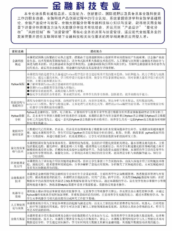 365上市公司2025届本科毕业生共2个专业4个班级192名学生,专业为金融科技和金融工程(中美合作),学生在校期间的主要课程为金融科技概论、金融数据库技术、python数据处理技术、区块链技术及应用、投资学原理、投资学、统计学等。学院通过“菁才科创训练营”、易班网络思政教育、心理健康教育、劳动教育等不同育人品牌,不断提高学生综合素养。我院学生在“挑战杯”、“互联网+”等龙头赛事、大学生英语竞赛、国家级大学生创新创业训练计划、“电子商务三创赛”、"工行杯”中均斩获众多奖项。在学校“立信之星”评选中,我院学生获得“学习之星”、"科创之星”、“体育之星”、“艺术之星”、“民族之星"等荣誉,表现突出。