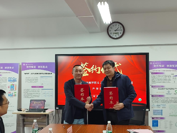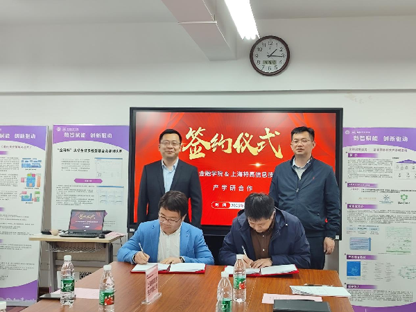 为贯彻落实国家关于高等教育服务经济社会发展、支撑科技自立自强和推动新质生产力发展的战略部署,2025年4月16日,我院与上海清湛智帆科技有限公司、上海特高信息科技有限公司两家企业签署产学研合作协议。上海清湛智帆科技有限公司副总经理张勤吉、上海特高信息科技有限公司董事长崔建军、CTO许文波,我院党总支书记凌慧义、党总支副书记、院长殷林森、副院长(挂职)程宏、党政办公室负责人黄文君、教师代表韩慧媛等参加仪式。