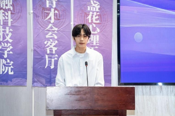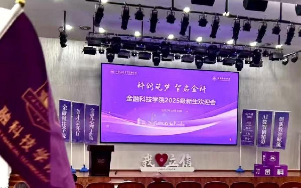 2025级金融科技2班学生孙浩东作为新生代表发言。他认为大学是一个全新的起点,也是一个充满机遇和挑战的舞台,要在金融科技领域不断探索,在科创活动中积极奋勇,创造精彩人生!
