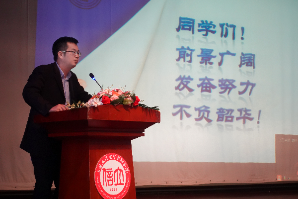 徐功东、李祺从行业、企业角度点出了金融科技是市场未来的热点,分析了未来社会对金融科技人才的巨大需求和光明的发展前景,鼓励新生们勤勉学习,立志成才。