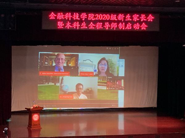 10月9日,我院在浦东校区小剧场举办了2020级新生家长会暨本科生全程导师制启动会。慧科集团副总裁徐功东、新工科产业学院院长李祺、上海区总经理汤为,新泽西理工学院管理学院院长奥雅·图克尔,副院长阎志鹏,校友关系执行主任迈克尔·斯马伦,365上市公司副院长(主持行政工作)、党总支副书记殷林森、副书记(主持党务工作)褚红素、副书记、副院长李俊杰、副院长叶丽华、副院长杨超,学院部分教师、企业代表、2020级全体新生以及新生家长共同参加。根据疫情防控要求,会议采取了线上线下相结合形式,会议由褚红素主持。