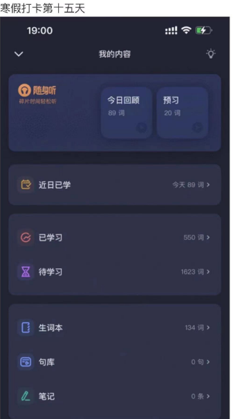 同学大多以英语积累为主,也有些同学会进行高数、考研与证书的学习。星光不负赶路人,时光不负有心人。不积跬步无以至千里。通过寒假打卡活动,同学们养成了自律的习惯。也希望以后的日子希望同学们继续保持自律这一人生态度,坚持好的学习习惯,向梦想奋斗,成为更好的自己!