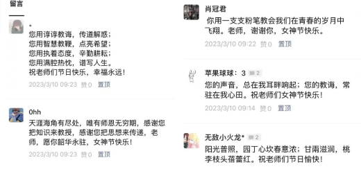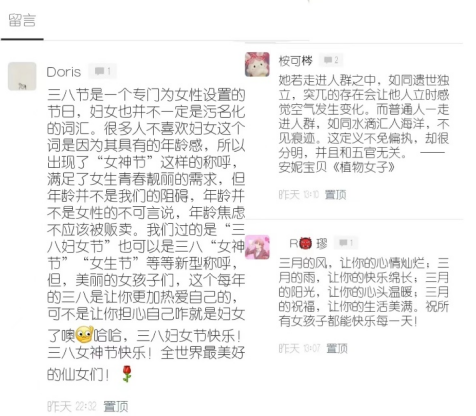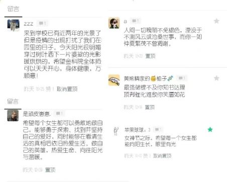 更多的同学留言则是基于妇女节这一时机,希望所有女性赤忱勇敢又被温柔以待,抒发了对于所有女性的美好祝福。
