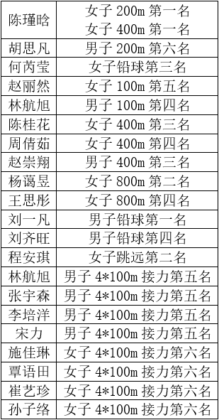 在本届运动会中,金科学子斩获佳绩,以下是表现突出的同学名单: