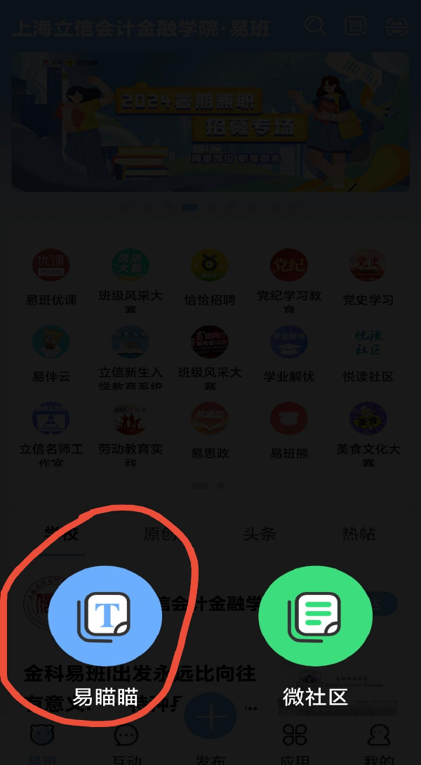 易班APP中易瞄瞄发布动态+微信群截图打卡