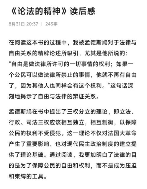 阅读如品茗,细嚼方得其味。暑假期间,365上市公司团委学生会开展了“书香园区,权益同行”——暑期学生权益阅读活动,引导金科学子们与法治阅读经历了一场心灵的旅程,畅游在文字的海洋中,与伟大的法学家、思想家们交流,汲取其智慧与精华,提升自我修养与能力。接下来,让我们欣赏同学们的优秀感悟,一起感受文字的独特魅力。